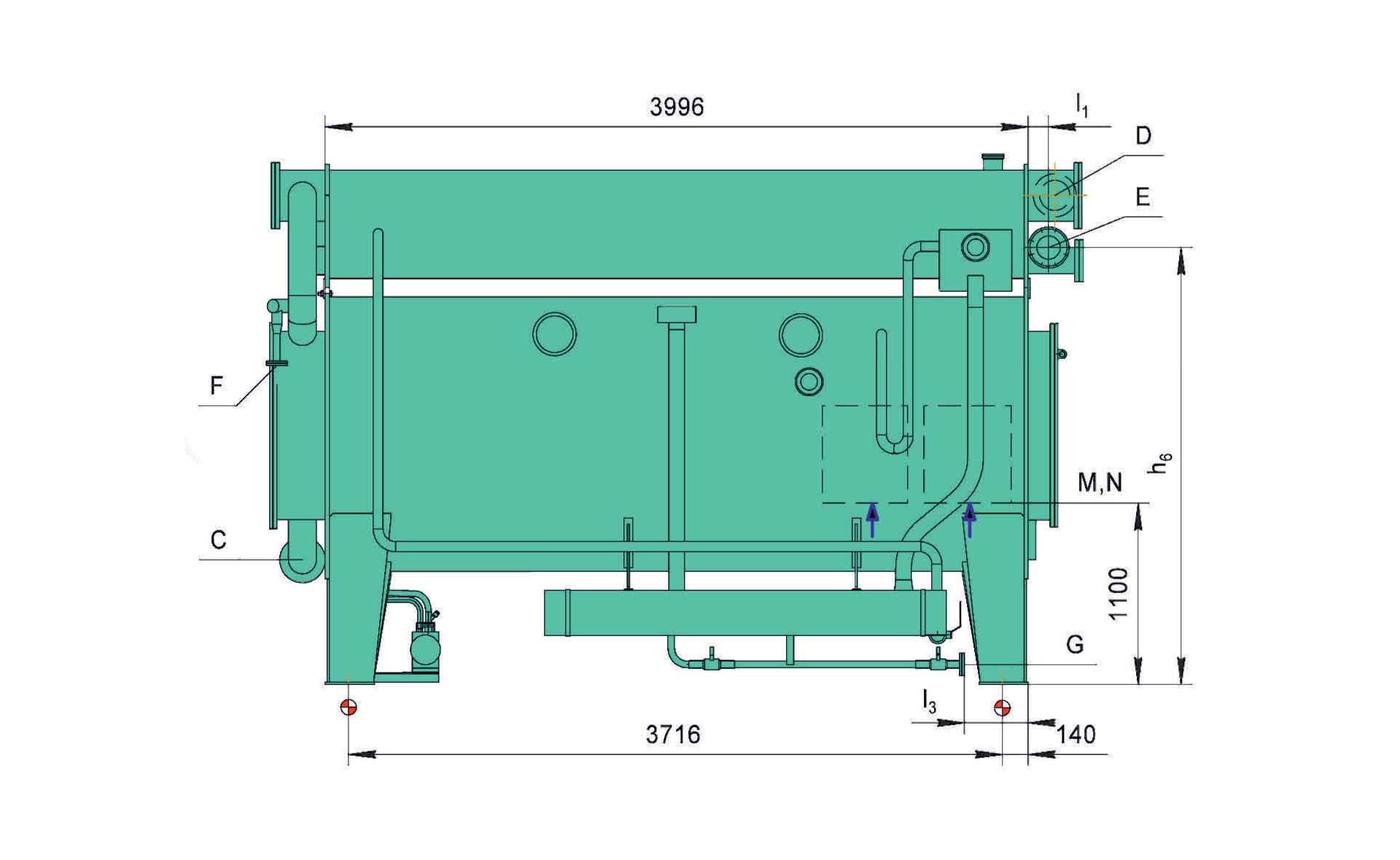Абсорбционные бромистолитиевые холодильные машины с паровым обогревом с одноступенчатой регенерацией раствора 10й серии 1500П