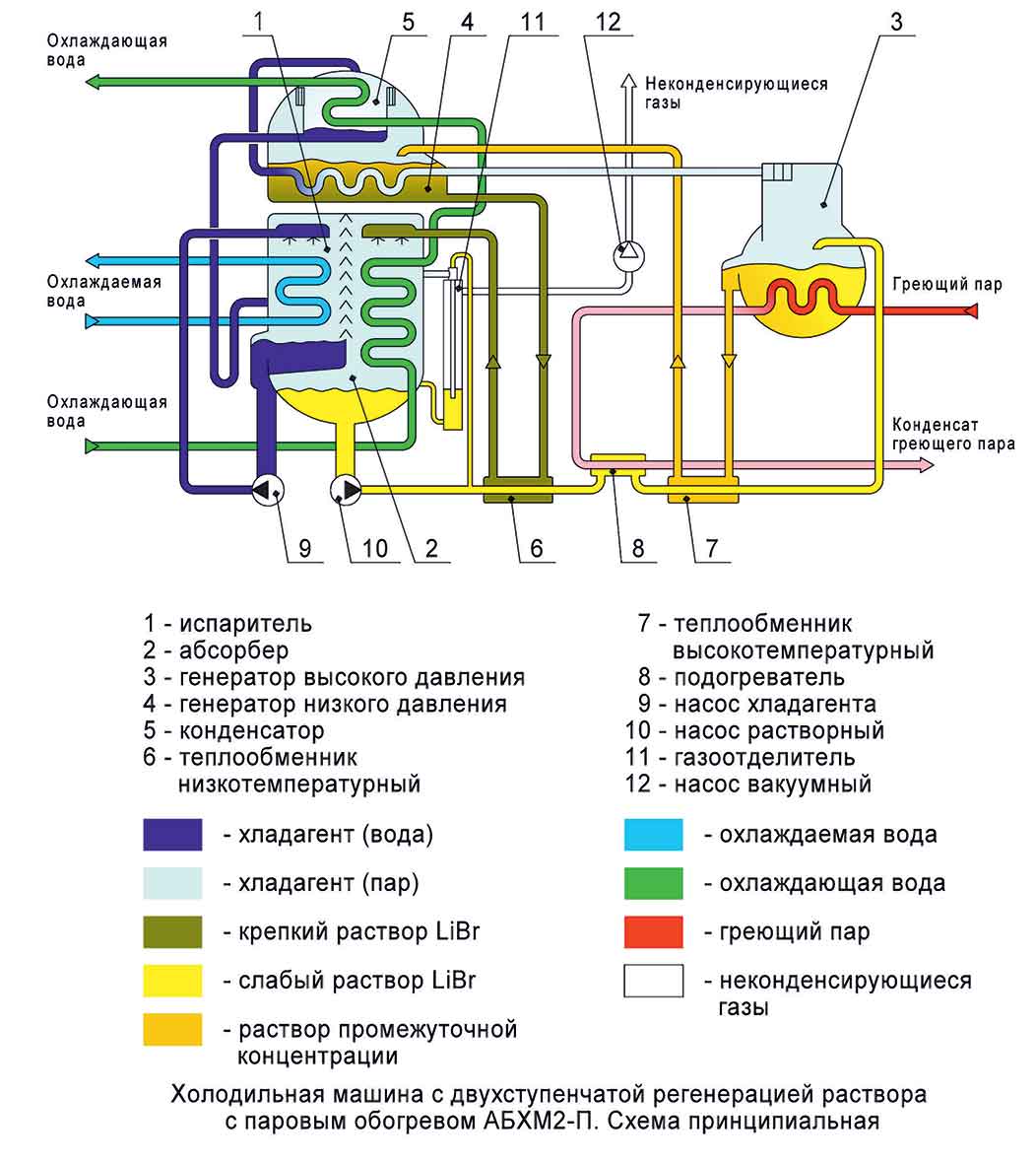 Абсорбционные бромистолитиевые холодильные машины с паровым обогревом с двухступенчатой регенерацией раствора 10й серии 2-4000П