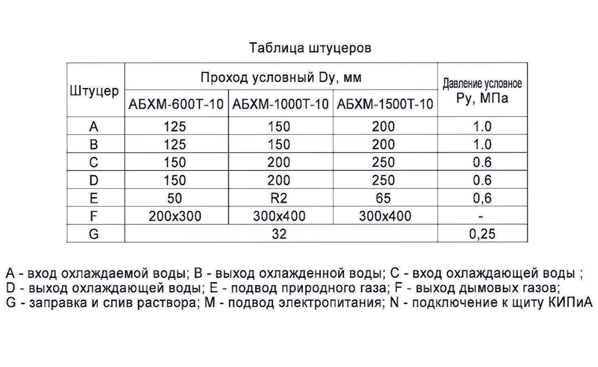 * - для холодильных машин с возможностью работы в режиме нагрева (АБХМ-Тн)