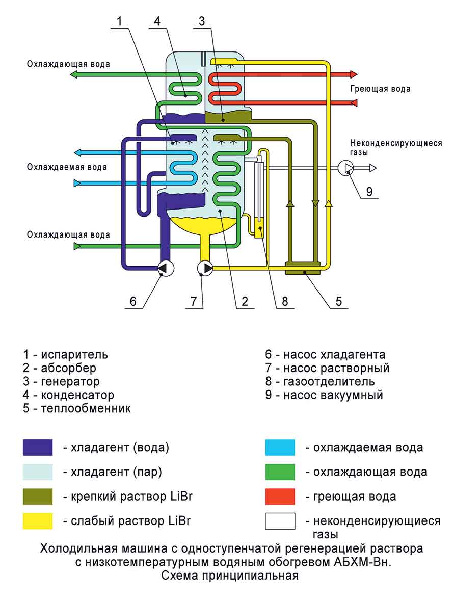 Абсорбционные бромистолитиевые холодильные машины с низкотемпературным водяным обогревом с одноступенчатой регенерацией раствора 10й серии 2000Вн