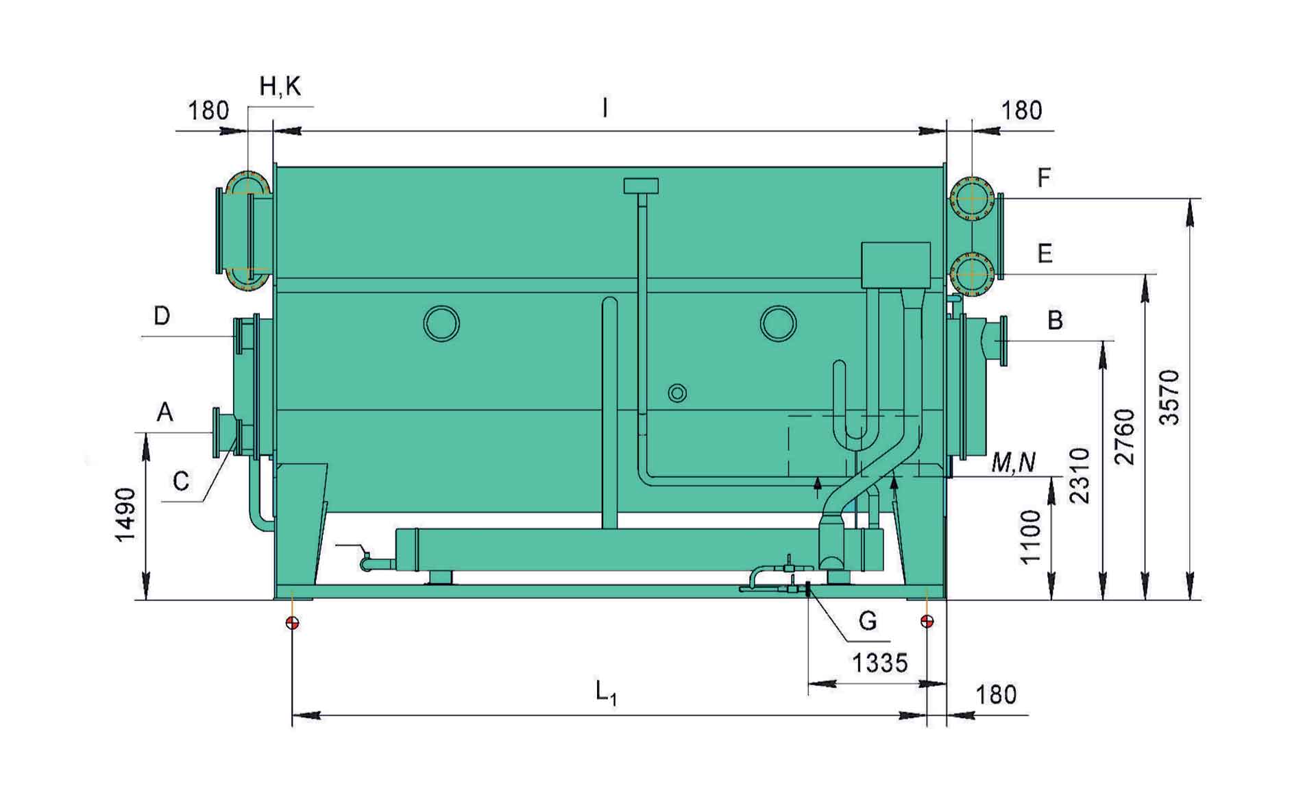 Абсорбционные бромистолитиевые холодильные машины с низкотемпературным водяным обогревом с одноступенчатой регенерацией раствора 10й серии 3000Вн