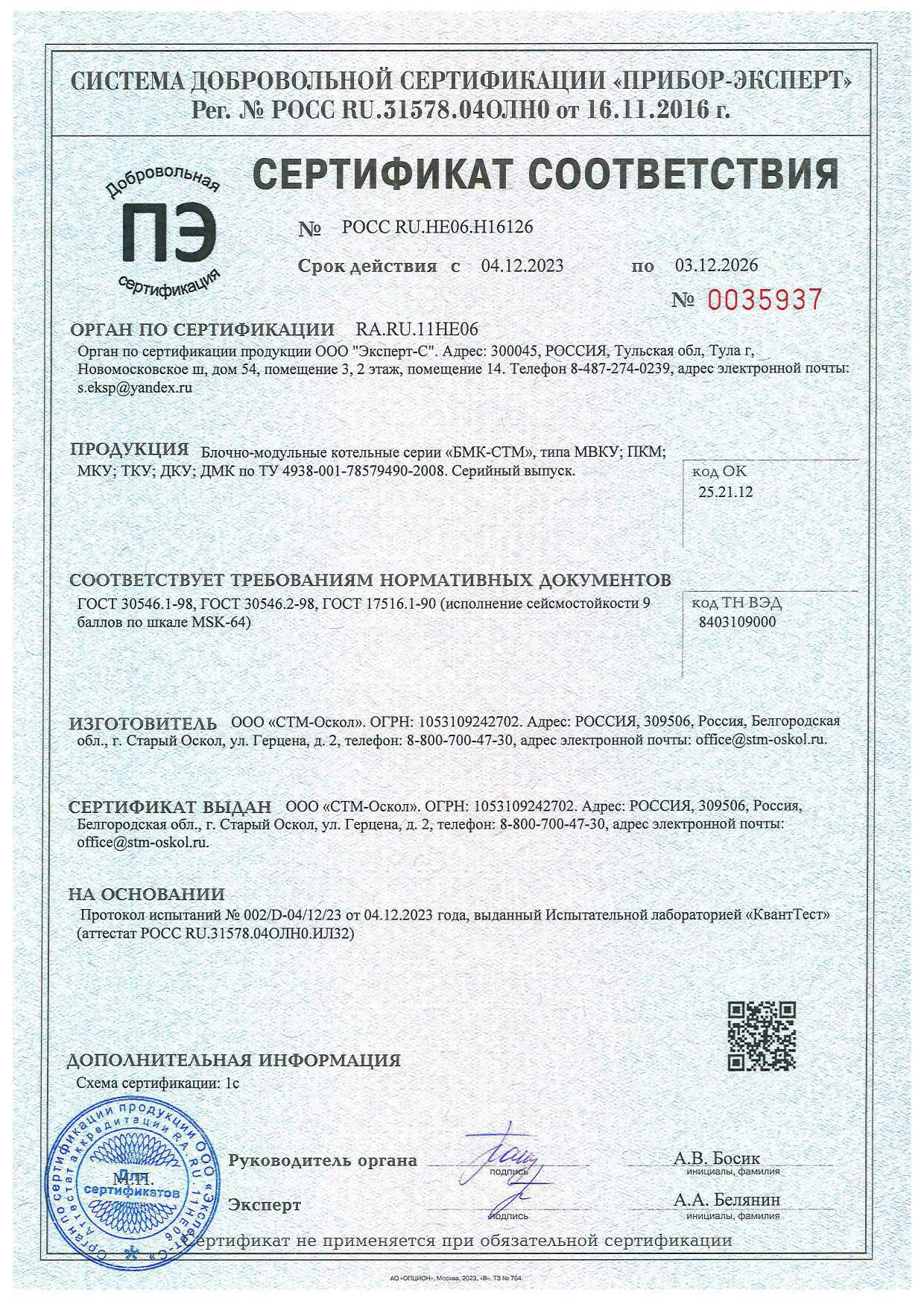 Cертификат ИСО ООО Завод «Современные тепловые машины-Оскол»
